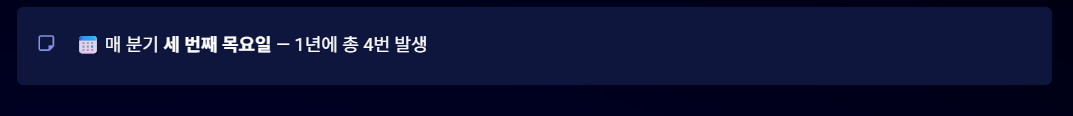 그리고 각 분기의 세 번째 목요일에 발생합니다.