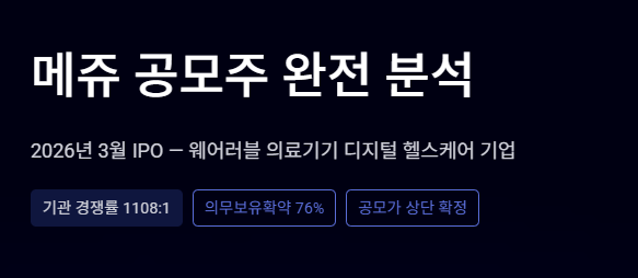 2026년 3월 공모주 시장에서 관심을 받는 기업 중 하나가 바로 **메쥬**입니다. 메쥬는 웨어러블 의료기기 기술을 기반으로 한 디지털 헬스케어 기업으로, 이번 IPO에서 기관 투자자들의 높은 관심을 받으며 공모가가 희망밴드 상단으로 확정되었습니다.