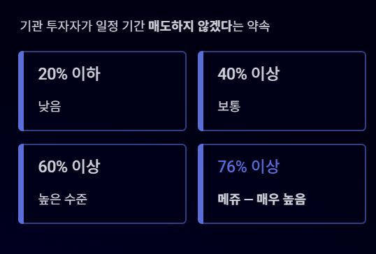 의무보유확약은 기관 투자자가 일정 기간 동안 주식을 팔지 않겠다고 약속하는 것입니다.