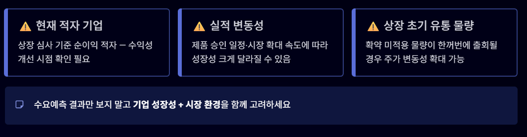 따라서 단순히 수요예측 결과만 보고 투자하기보다는 기업 성장성과 시장 환경을 함께 고려하는 것이 좋습니다.