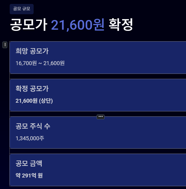 희망 공모가 범위의 상단 가격으로 공모가가 확정된 것은 기관 투자자들의 수요가 강했다는 의미로 해석됩니다.