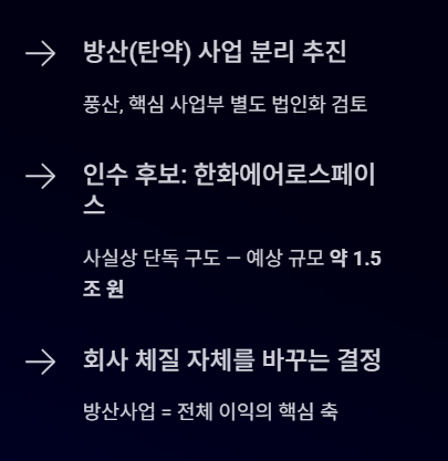 - 풍산 → 방산(탄약) 사업 분리 추진