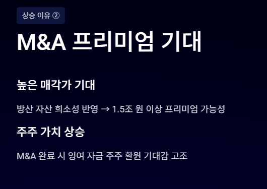 한화에어로스페이스의 인수 가능성이 부각되며 이 흐름은 단순 개별 종목이 아니라