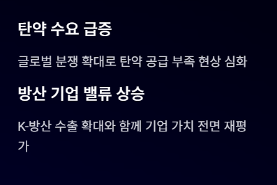 => 방산 산업 전체 흐름 변화의 시작점이다.