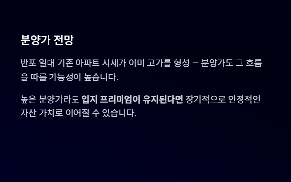 반포 일대 기존 아파트 시세가 이미 고가를 형성하고 있기 때문에, 분양가 역시 그 흐름을 따라갈 가능성이 높습니다.