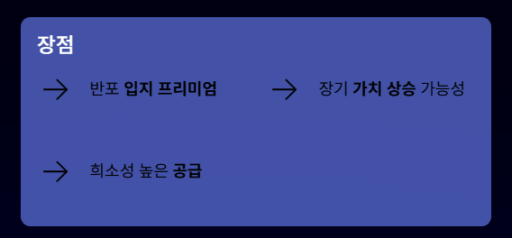- 특징: 고급화 설계, 커뮤니티 특화, 입지 프리미엄