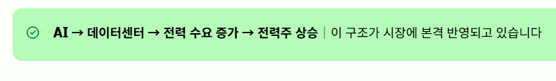 AI → 데이터센터 → 전력 수요 증가 → 전력주 상승