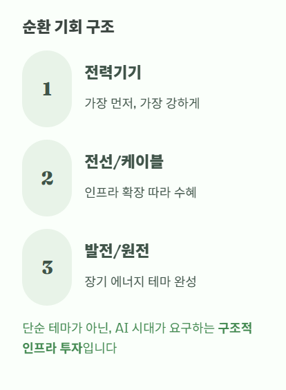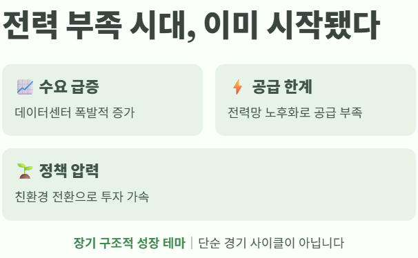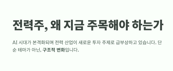 단순한 테마가 아니라, AI 시대가 본격화되면서 전력 산업 자체가 다시 주목받고 있기 때문입니다.