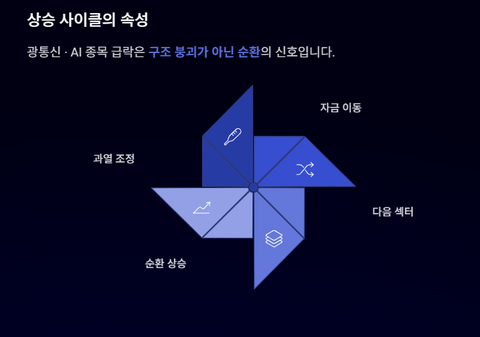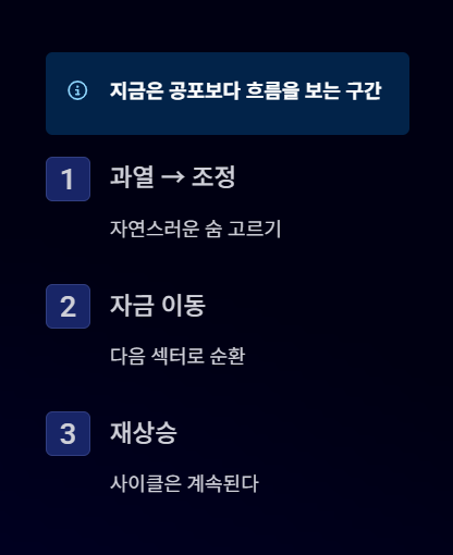 => 상승 사이클에서는 조정 = 구조 붕괴가 아니라 ‘순환’