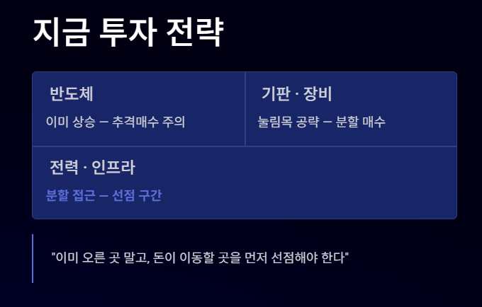 ✔ 이미 오른 반도체 → 추격매수 주의