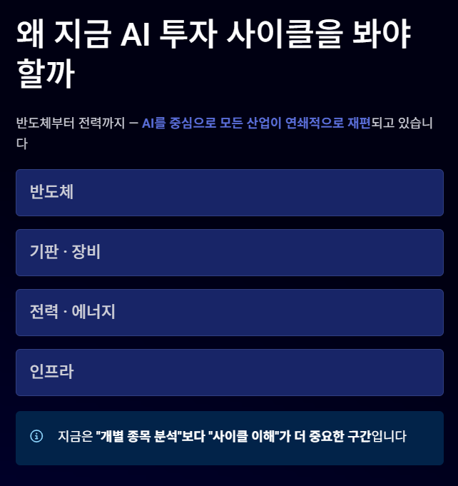 => 즉, 지금 시장은 “개별 종목 분석”보다 “사이클 이해”가 더 중요한 구간 입니다.