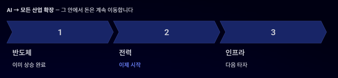 => 결국 투자에서 중요한 건 “무엇이 오를까”가 아니라 “다음 순서가 무엇인가”입니다