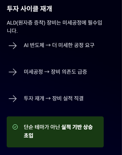특히 주성엔지니어링 같은 기업은 ALD(원자층 증착) 장비를 중심으로 미세공정에 필수적인 역할을 합니다.