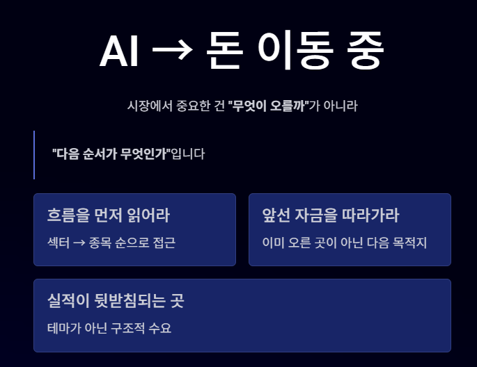 지금 시장은 단순합니다. “AI → 돈 이동 중”