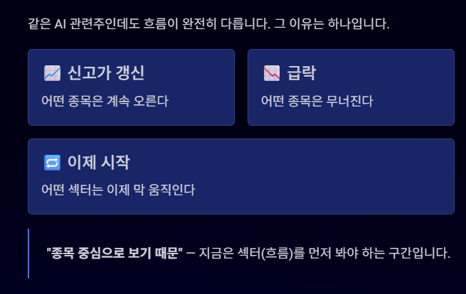 섹터(흐름)를 먼저 보고 종목을 선택해야 하는 구간입니다.