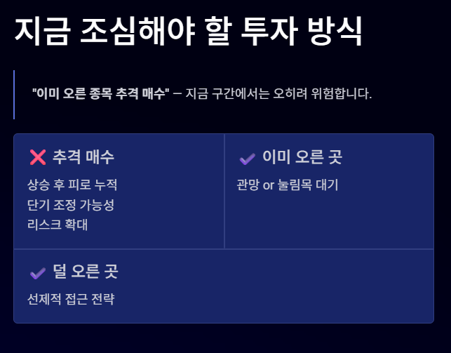 ✔ 이미 오른 곳 → 관망 or 눌림목