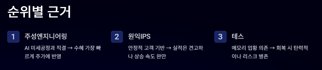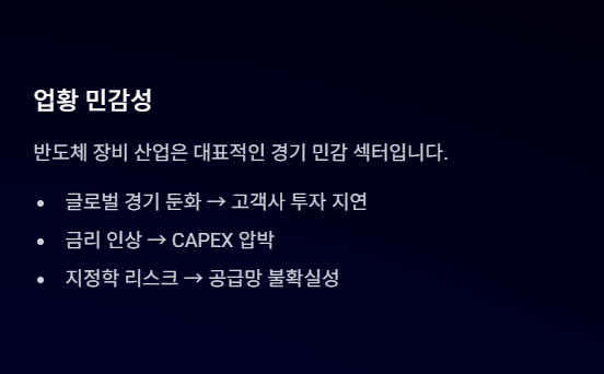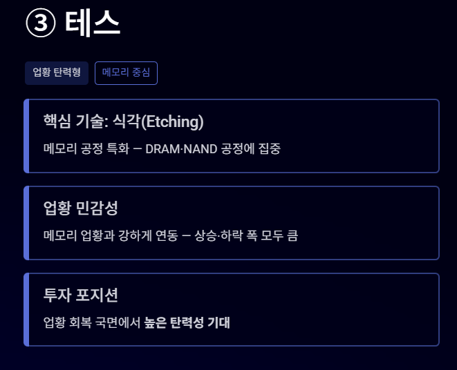 | 테스 | 식각 | 메모리 중심 | 업황 민감 |