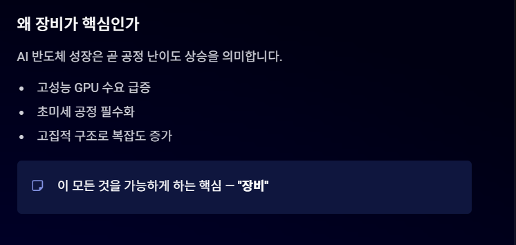 AI 성장 → 공정 복잡도 증가 → 장비 수요 증가