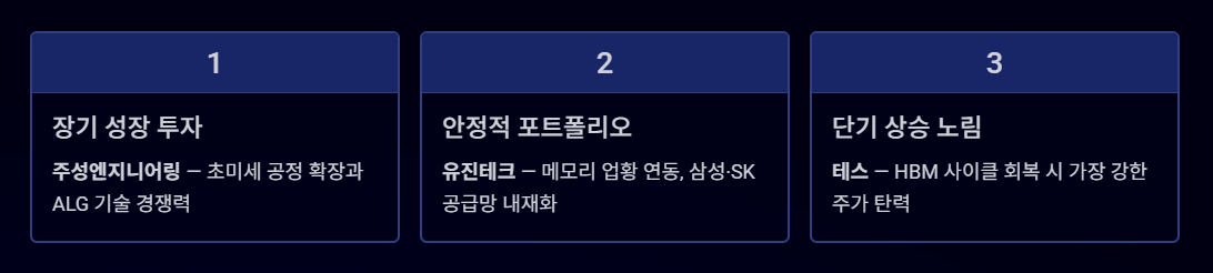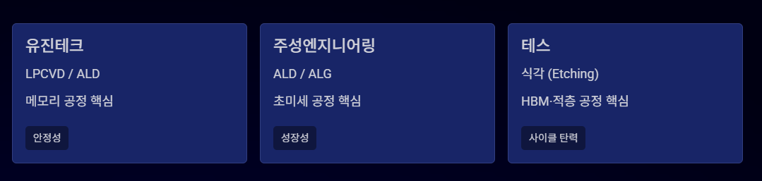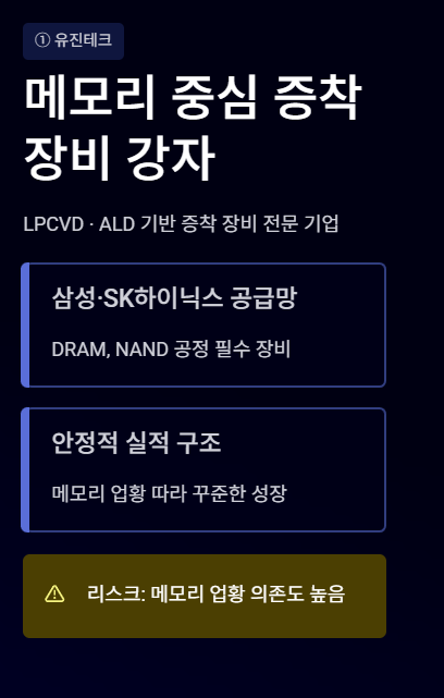 - 유진테크 → LPCVD/ALD → 메모리 공정 핵심