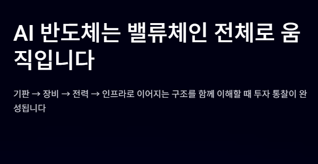 기판 → 장비 → 전력 → 인프라로 이어지는 밸류체인 구조로 움직입니다.