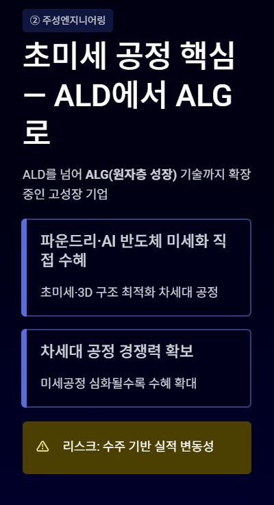 - 주성엔지니어링 → ALD → 초미세 공정 핵심