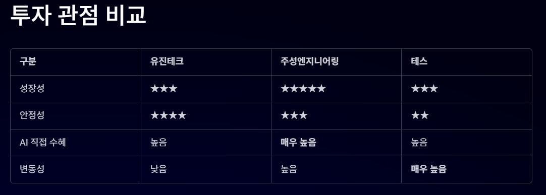 | 구분 | 유진테크 | 주성엔지니어링 | 테스 |