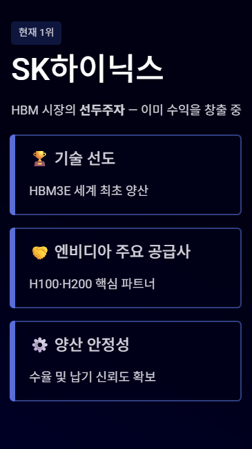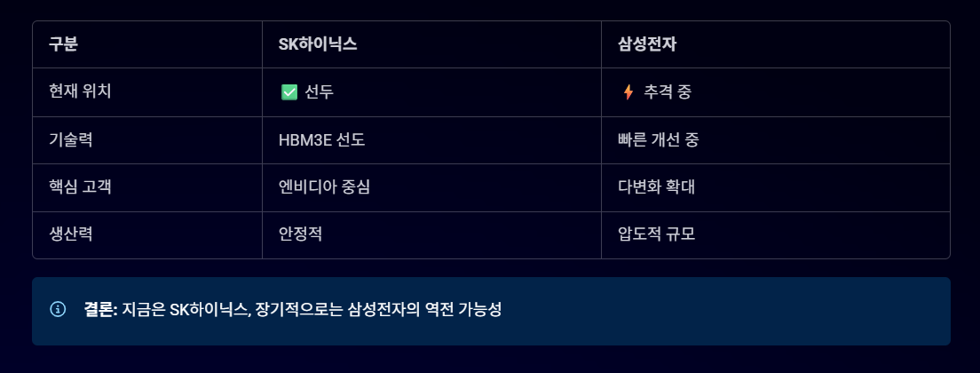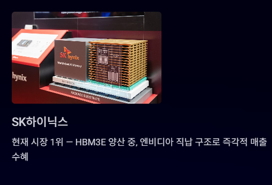 SK하이닉스는 현재 HBM 시장에서 가장 앞서 있는 기업입니다.