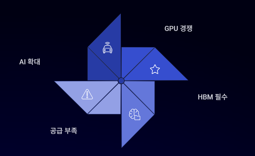 특히 NVIDIA의 AI 칩 구조에서 HBM은 사실상 필수 요소가 되면서