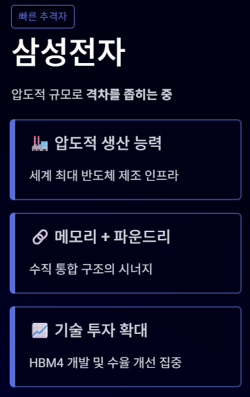 삼성전자는 HBM 시장에서 빠르게 추격 중입니다.