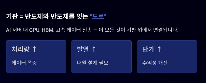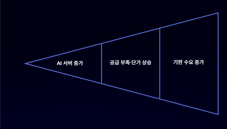 AI 서버 증가 → 기판 수요 증가 → 공급 부족 → 단가 상승