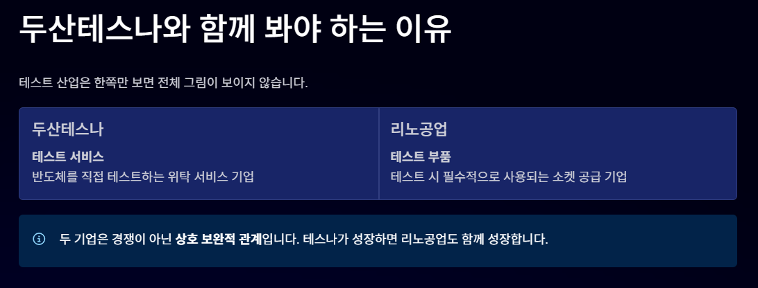 두산테스나, 왜 주목받을까? 두산테스나는반도체 공정 중에서도 테스트(후공정)를 담당하는 기업입니다. 최근 주가가 움직이는 이유는 단순합니다.=> AI 반도체 증가 → 고성능 칩 증가 → 테스