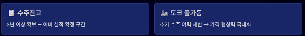 - 수주 → 2년 뒤 매출 구조