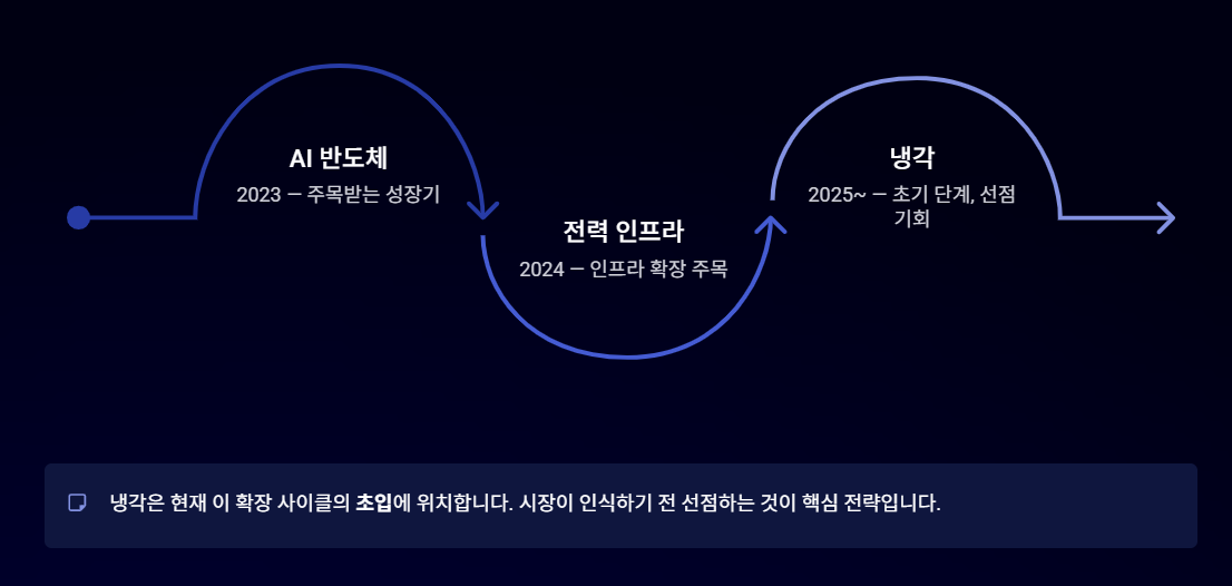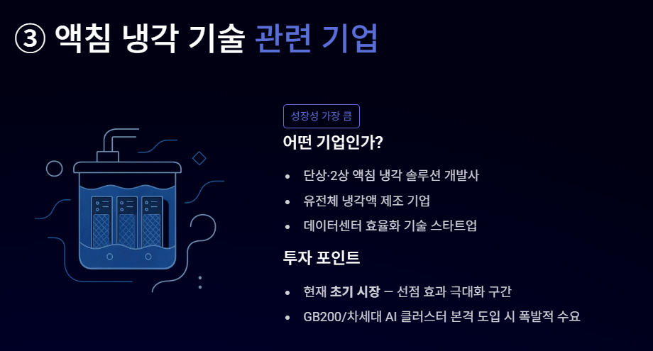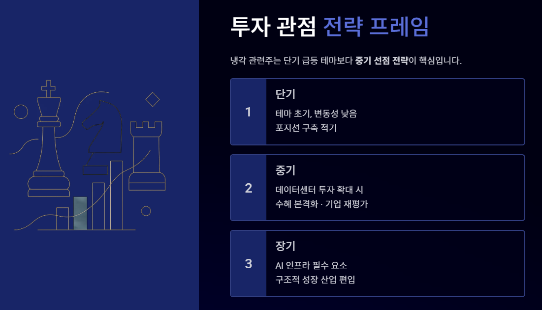 냉각 시장은 아직 초기 단계이기 때문에, “직접 수혜주”보다