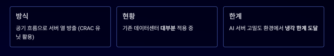 데이터센터 냉각 방식은 크게 두 가지로 나뉩니다.