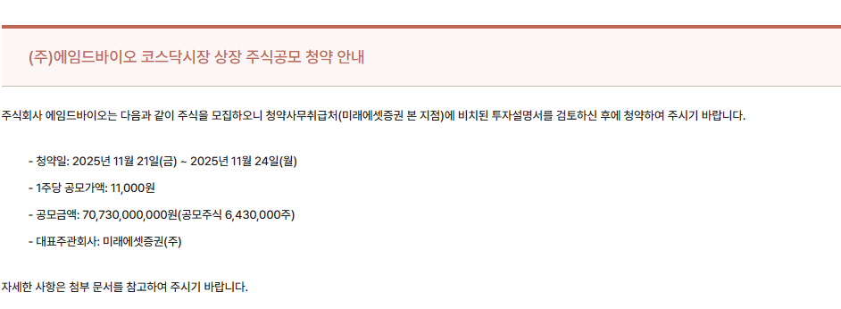 바이오 공모주가 이어지는 11월, 그중 가장 이슈와 기대를 동시에 받은 종목이 에임드바이오다.