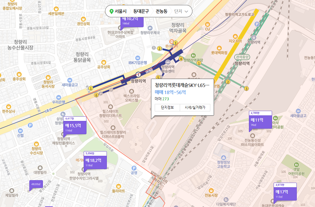 청량리역 일대는 서울 신축 중에서도 가격이 매우 강한 편입니다.