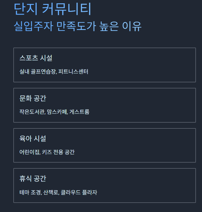 준공 후 실입주자들의 평가가 좋은 이유는 커뮤니티 품질 때문입니다.