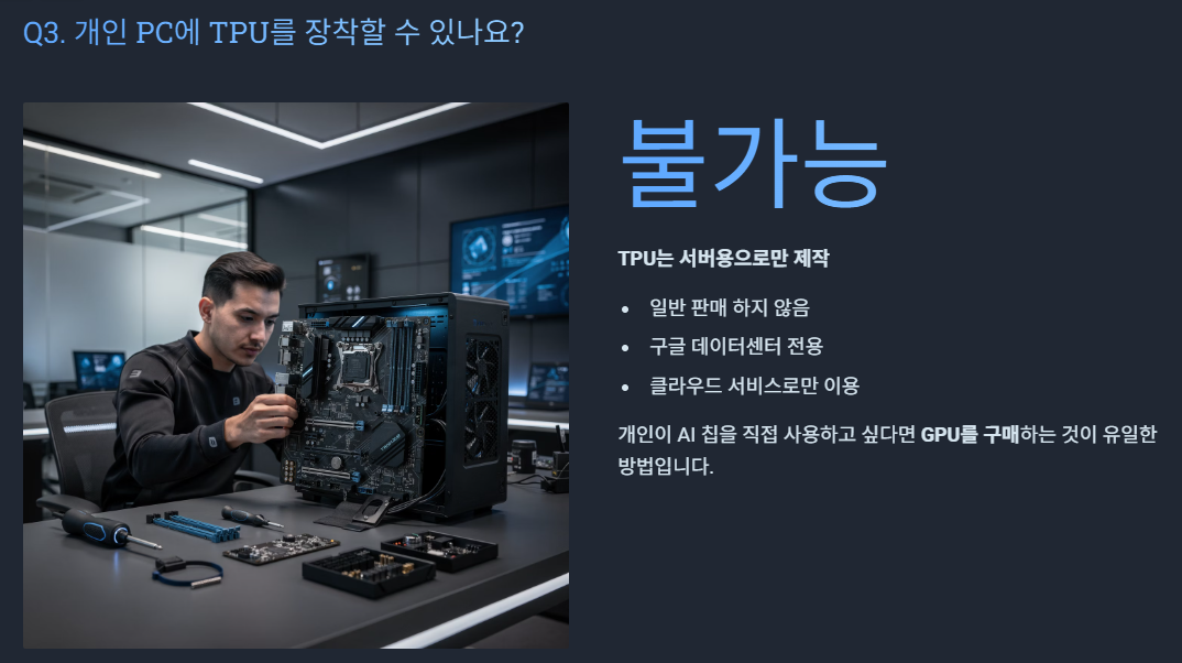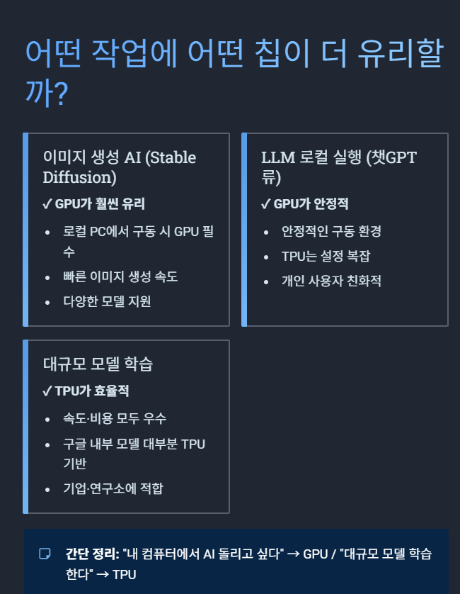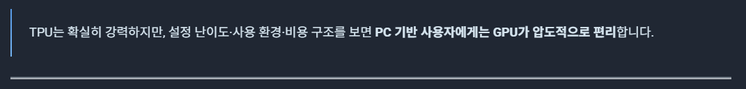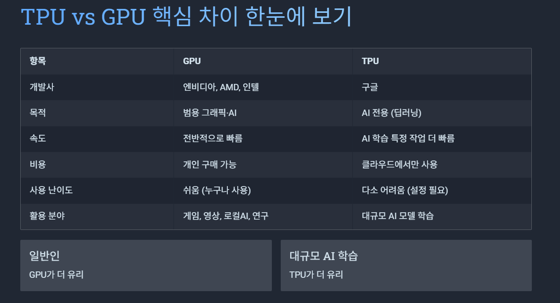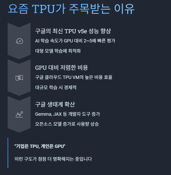 기업은 TPU, 개인은 GPU → 이런 구도가 점점 더 명확해지는 중입니다.