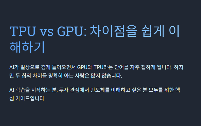 AI가 일상으로 깊게 들어오면서 GPU와 TPU라는 단어를 많이 보게 됩니다.