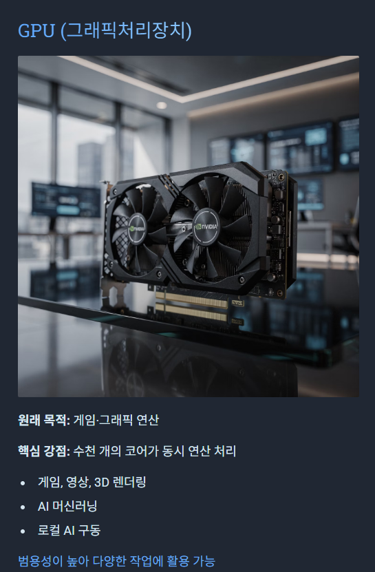 - “내 컴퓨터에서 AI 돌리고 싶다” → GPU
