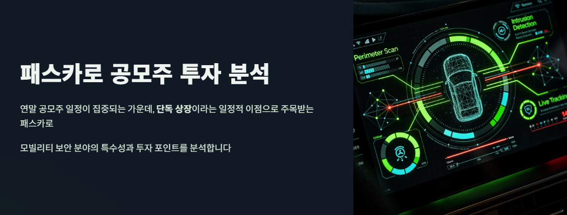 그중 패스카로는 단독 상장이라는 일정적 이점과 모빌리티 보안 분야라는 특수성으로 시장의 관심을 받고 있습니다.