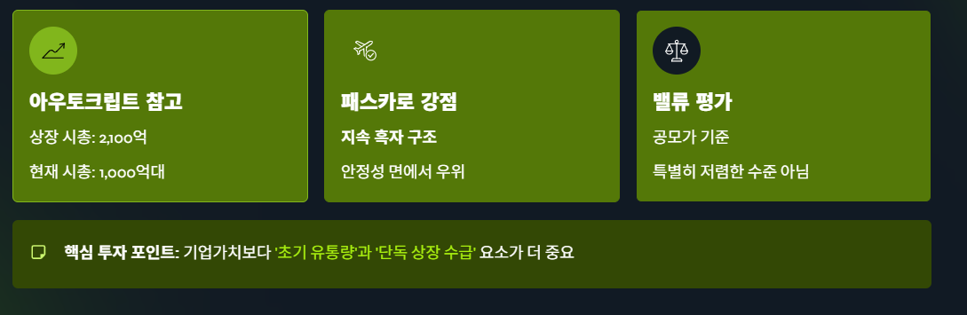 - 그러나 공모가 기준 밸류가 “특별히 저렴하다”고 보기는 어렵습니다.