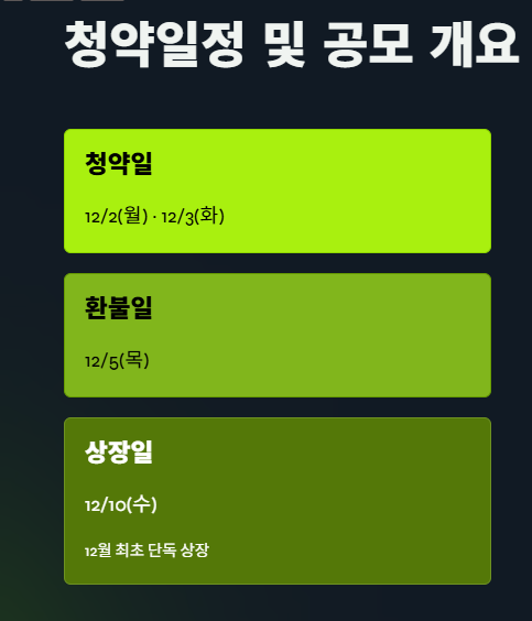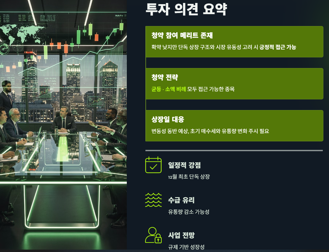 - 상장일: 12/10(수) – 12월 공모주 중 가장 이른 단독 상장 예정