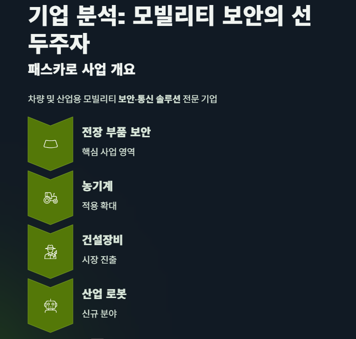 패스카로는 차량 및 산업용 모빌리티에 적용되는 보안·통신 솔루션을 개발·공급하는 회사입니다.