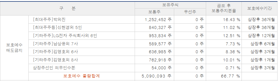 - 일반청약자 배정 450,000주 → 전량 유통 가능