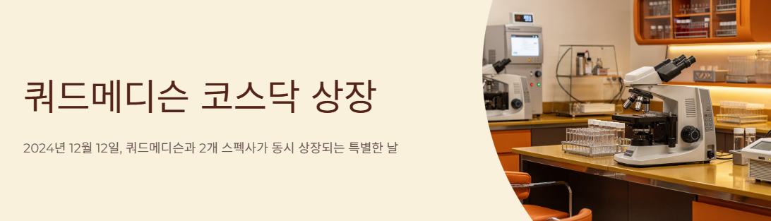 오늘 12월 12일, 쿼드메디슨이 드디어 코스닥에 상장합니다.