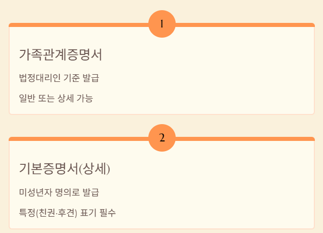 이 서류들은 미성년자와 법정대리인의 관계를 확인하기 위한 필수 자료이며,
