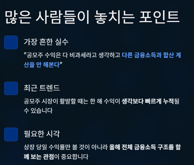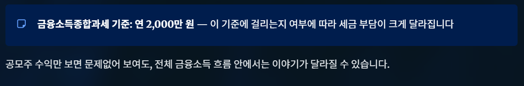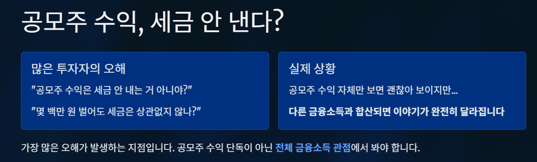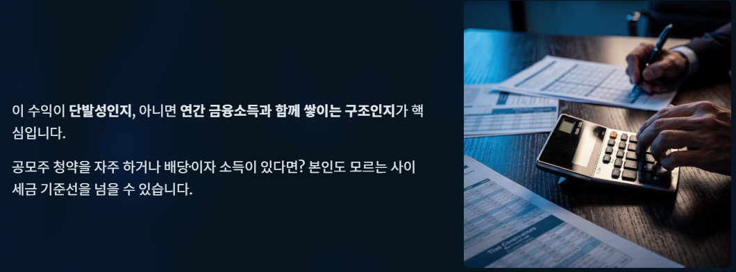 공모주 수익 자체만 보면 큰 문제가 없어 보여도, 다른 금융소득과 함께 보느냐에 따라 상황은 완전히 달라진다.