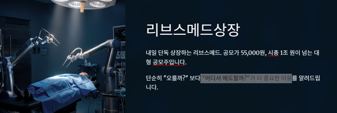 최근 상장한 공모주들이 기대 이상의 흐름을 보여주면서 이번 상장 역시 관심이 상당히 높다. 특히 의료기기·수술로봇이라는 성장 산업에 속해 있어 장기 성장성까지 함께 거론되고 있다.