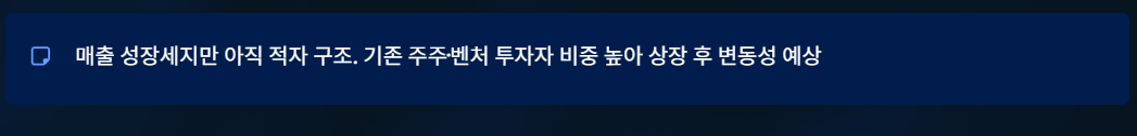 매출은 빠르게 증가하고 있지만 아직 적자 구조이며, 기존 주주 물량과 벤처 투자자 비중이 높은 편이라 상장 이후 변동성은 클 수 있는 구조다.